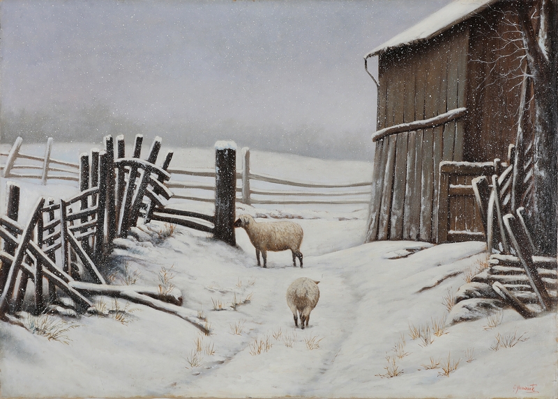 NUNZIANTE ANTONIO (n. 1956) Snowfall. 1987. Oil on canvas . Cm 70,00 x 50,00. At the back signature and title.Antonio Nunziante Archives authenticity certificate on photo.. Cornice presente