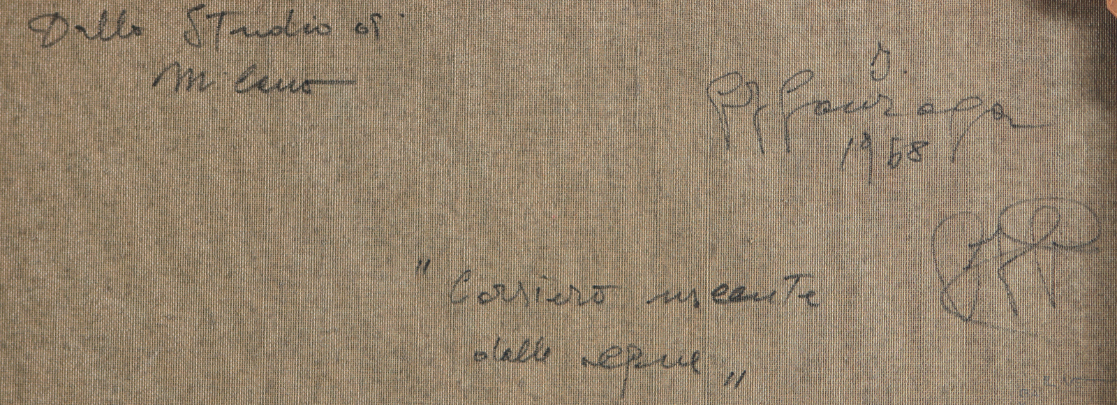 GONZAGA GIOVAN FRANCESCO (1921 - 2007) Corsiero outgoing from the waters. 1968. Oil on canvas . Cm 60,00 x 50,00. Signature lower left. At the back: title, signature and year. Publication: solo exhibition catalog, Galleria d'Arte Il Vertice, Milano, 16 - 30 November 1968.