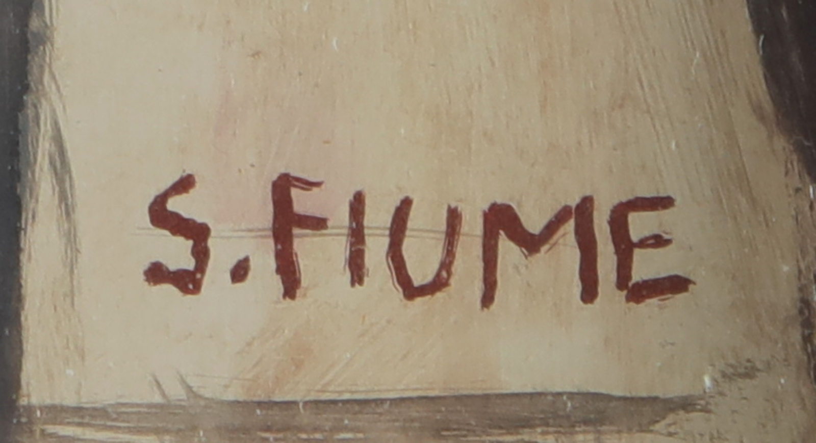 FIUME SALVATORE (1915 - 1997) Senza titolo. Olio su faesite. Cm 33,50 x 49,00. Firma in basso a destra. Cornice presente