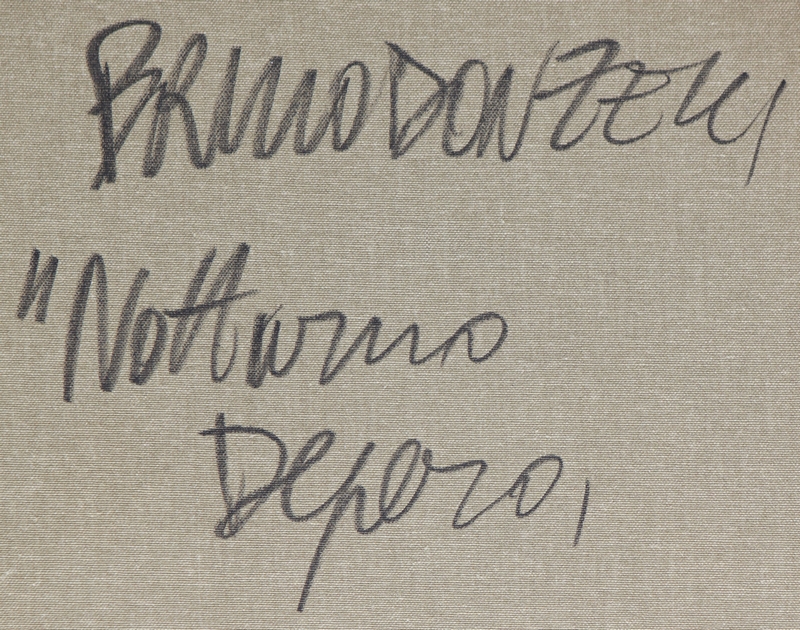 DONZELLI BRUNO (n. 1941) Night Depero. Mixed media on canvas. Cm 50,00 x 70,00. Signature lower right. At the back signature and title. Cornice presente