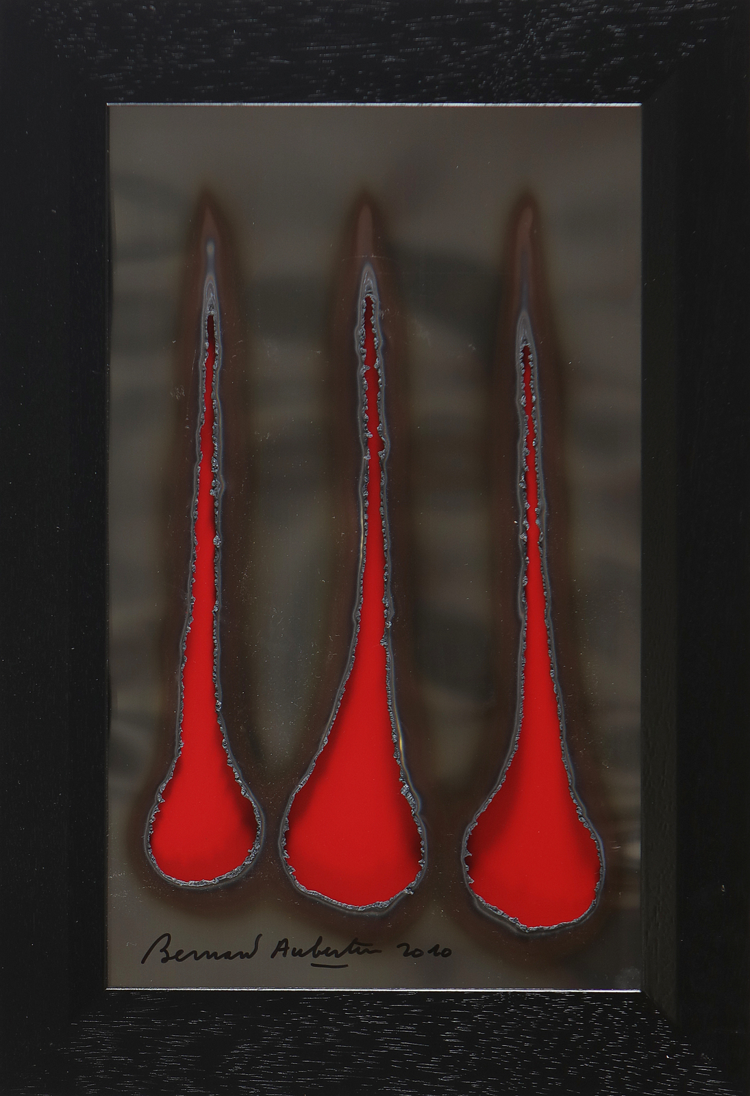 AUBERTIN BERNARD (1934 - 2015) Fer Brùlé. 2010. Lamiera bruciata. Cm 30,00 x 49,00. Firma e anno in basso. Autentica dell'artista a cura dell'Archivio Nordest, Seregno riportante il relativo numero d'inventario. Pubblicazione: Archivio Nordest, Bernard Aubertin, Fer Brule, Piazza Dante Editore, 2012, p. 168. Cornice presente