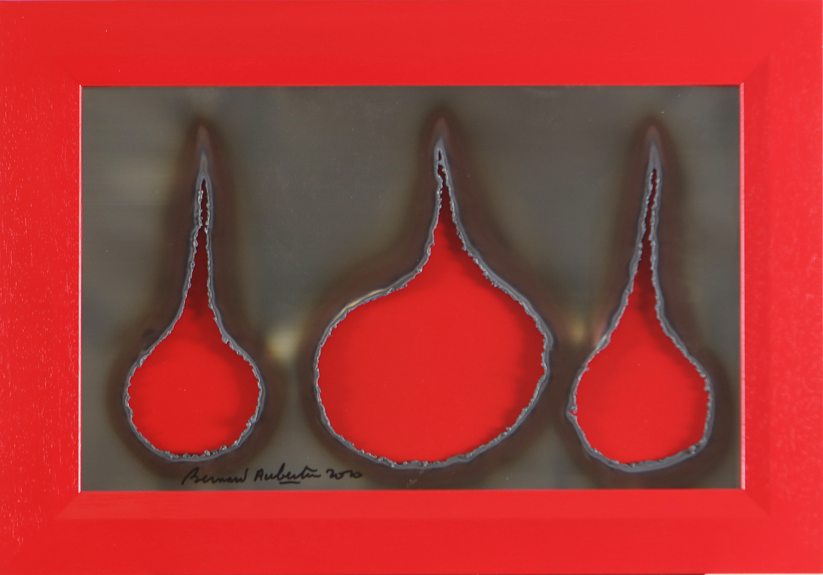 AUBERTIN BERNARD (1934 - 2015) Fer Brùlé. 2010. Lamiera bruciata. Cm 49,00 x 30,00. Firma e anno in basso a sinistra. Autentica dell'artista a cura dell'Archivio Nordest, Seregno riportante il relativo numero d'inventario. Pubblicazione: Archivio Nordest, Bernard Aubertin, Fer Brule, Piazza Dante Editore, 2012, p. 86. . Cornice presente
