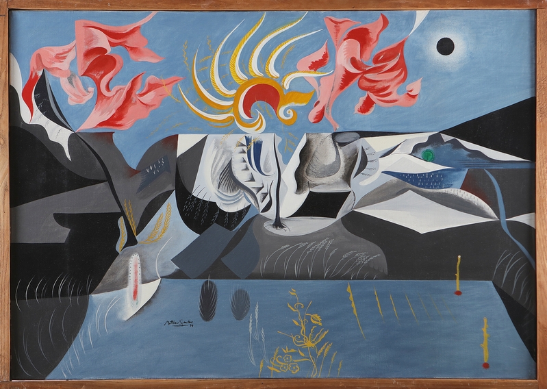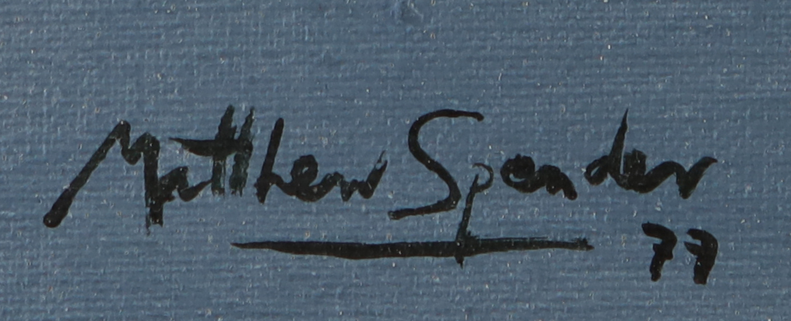SPENDER MATTHEW (n. 1945) Sudden fury. 1977. Acrylic on canvas. Cm 100,00 x 70,00. Signature and year lower left. Gallerie delle Ore, Milano, label at the back. Cornice presente