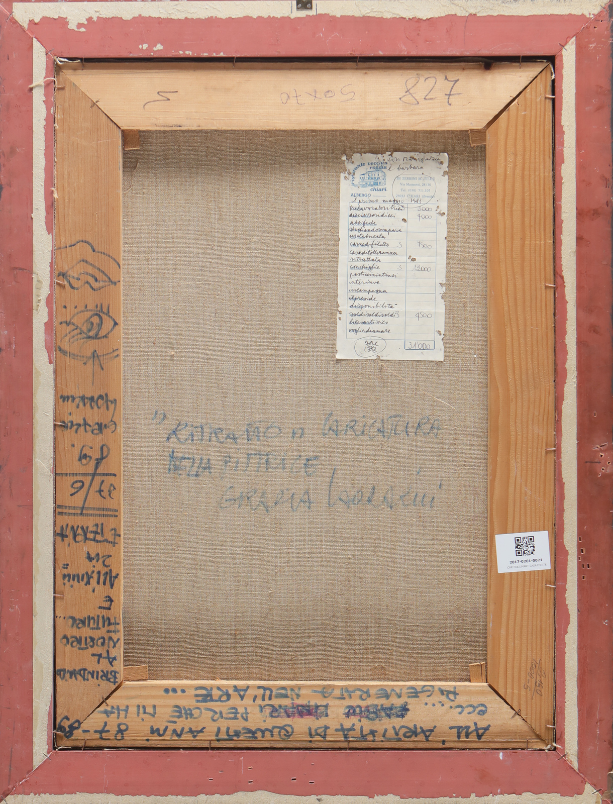CAVELLINI GUGLIELMO ACHILLE (1914 - 1990) Ritratto caricaturale della pittrice Grazia Lazzarini. 1983. Tecnica mista su tela. Cm 50,00 x 70,00. Firma e anno in basso a destra e titolo al retro. Cornice presente