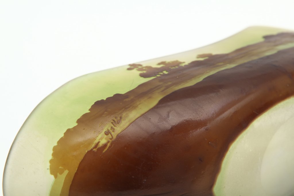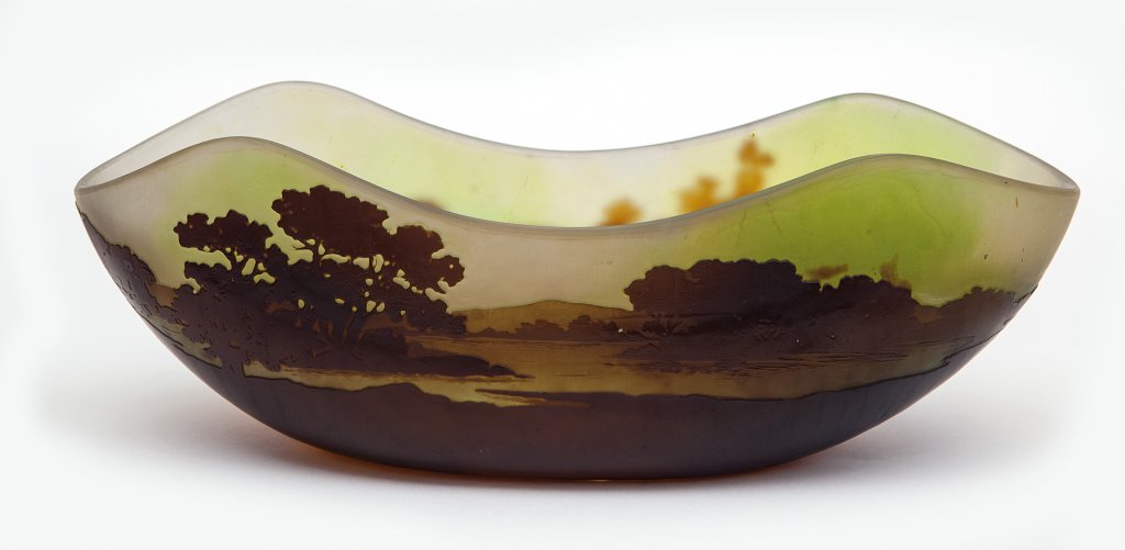 EMILE GALLE'Una coppa in vetro cammeo, inizi '900. Firmata. Cm 10 (h) x 29 x 11.