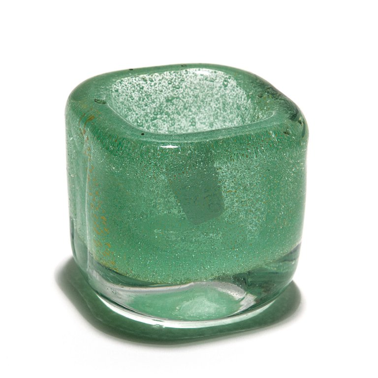 vetro sommerso a bollicine con applicazione di foglia d'oro.