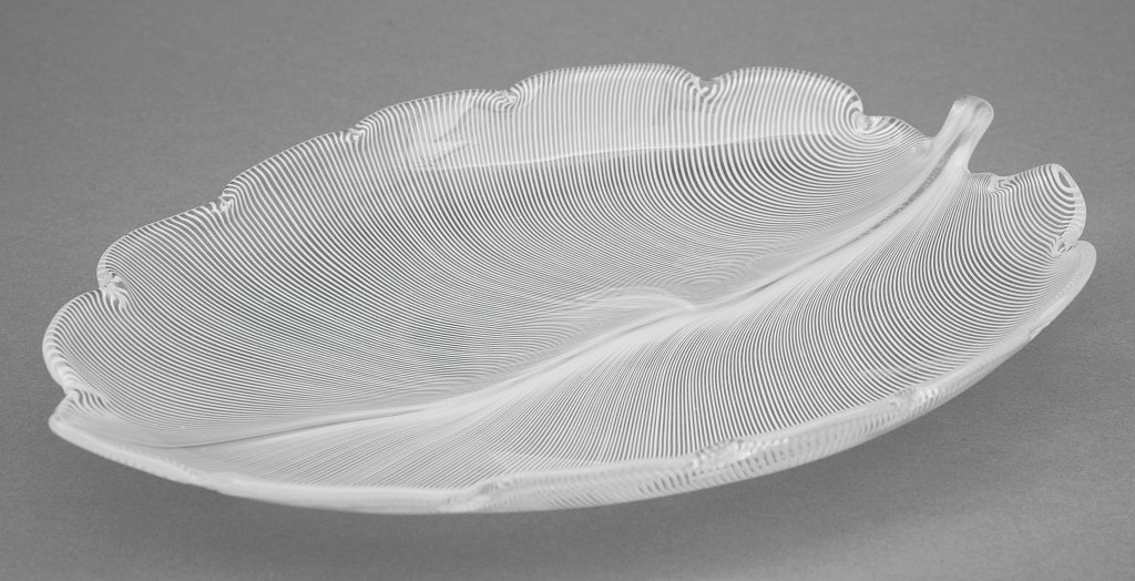 VENINI Una foglia in vetro a mezza filigrana, disegno TYRA LUNDGREN, anni 30,...
