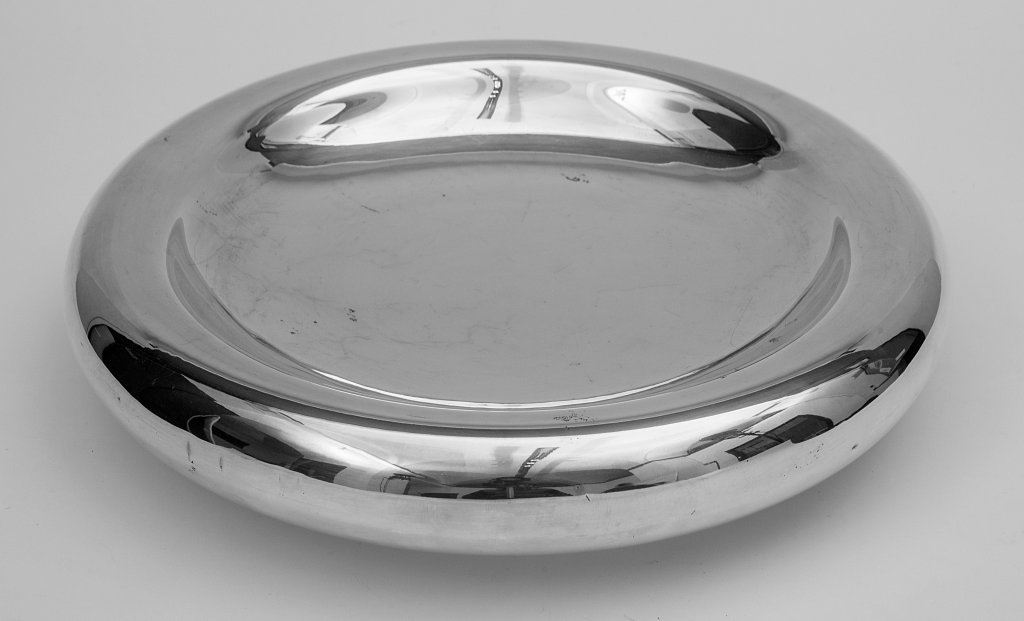 GIULIANA GRAMIGNA Un centro da tavola per BACCI, anni '70. Metallo argentato....