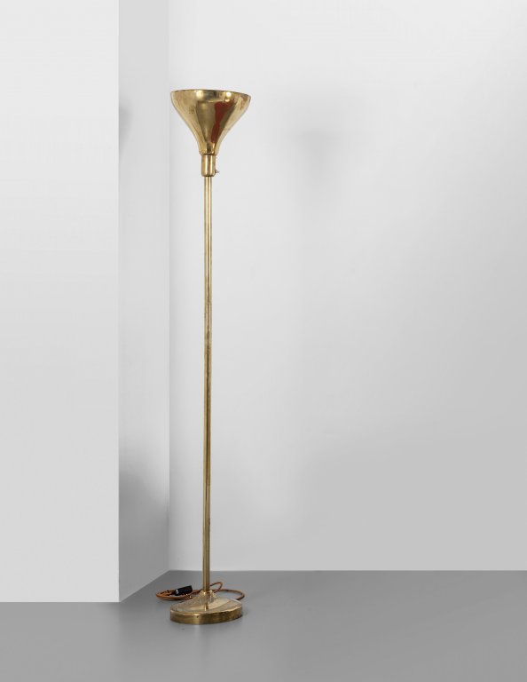 UNA LAMPADA DA TERRA, anni '30. Ottone, riflettore in vetro stampato...