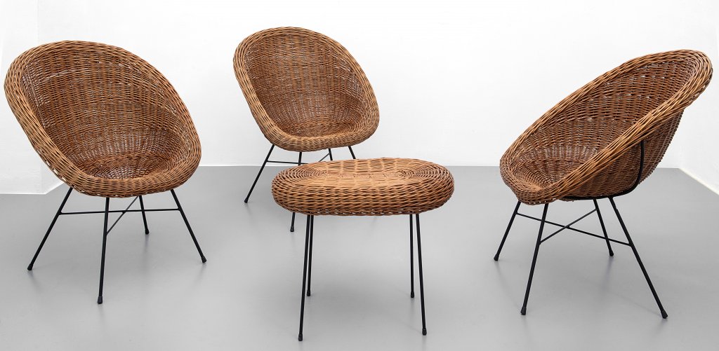 TRE POLTRONCINE E UN TAVOLINO, anni '50.