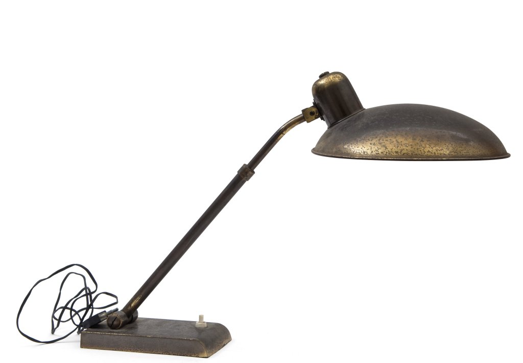 UNA LAMPADA DA TAVOLO, anni '50. Ottone, stelo telescopico. Altezza minima cm...