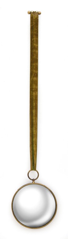 Ottone, cristallo curvato argentato, sospensione a passamaneria.