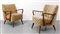 DUE POLTRONE, anni '60. Struttura in legno, braccioli e gambe in legno di...
