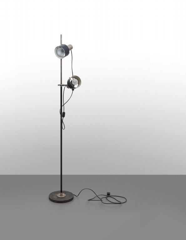 UNA LAMPADA DA TERRA, anni '60. Ghisa verniciata, ottone nichelato, alluminio...