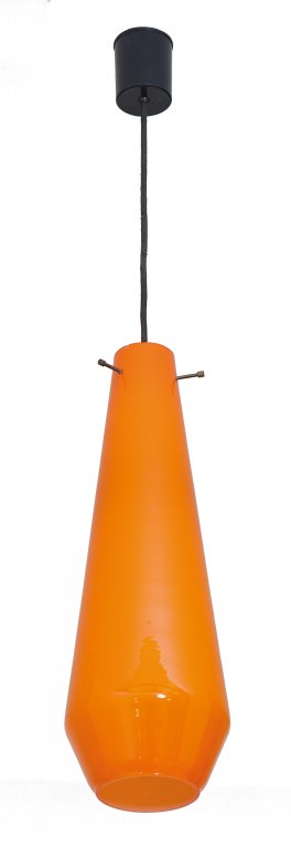 UNA LAMPADA A SOSPENSIONE, anni '60. Vetro incamiciato.Altezza diffusore cm 41.