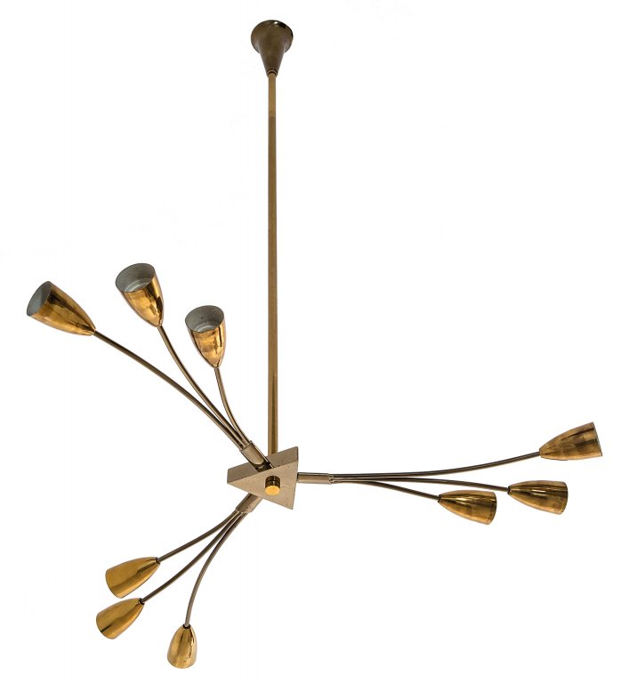 UNA LAMPADA A SOSPENSIONE, anni '60Ottone. Altezza cm 105, diametro cm 75.