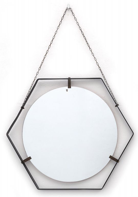 UNO SPECCHIO DA PARETE, anni '60. Acciaio verniciato, ottone brunito,...