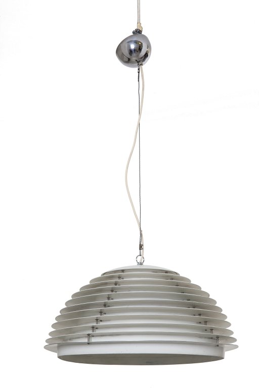 UNA LAMPADA A SOSPENSIONE, anni '60. Alluminio laccato. Altezza diffusore cm...