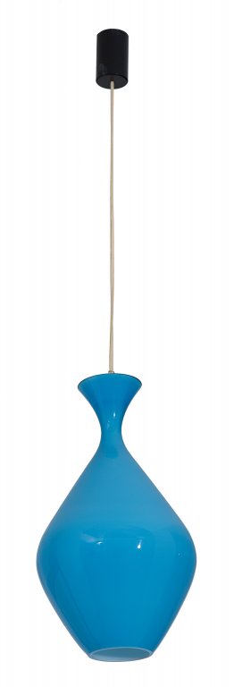 UNA LAMPADA A SOSPENSIONE, anni '60. Vetro incamiciato.Altezza diffusore cm 42.