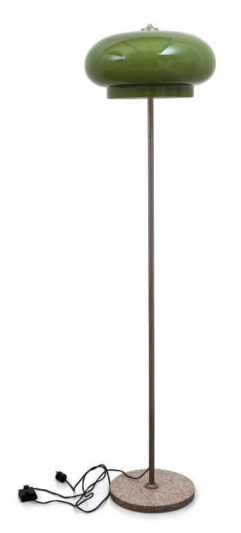 UNA LAMPADA DA TERRA, anni '60. Granito, ottone, vetro incamiciato. Altezza...