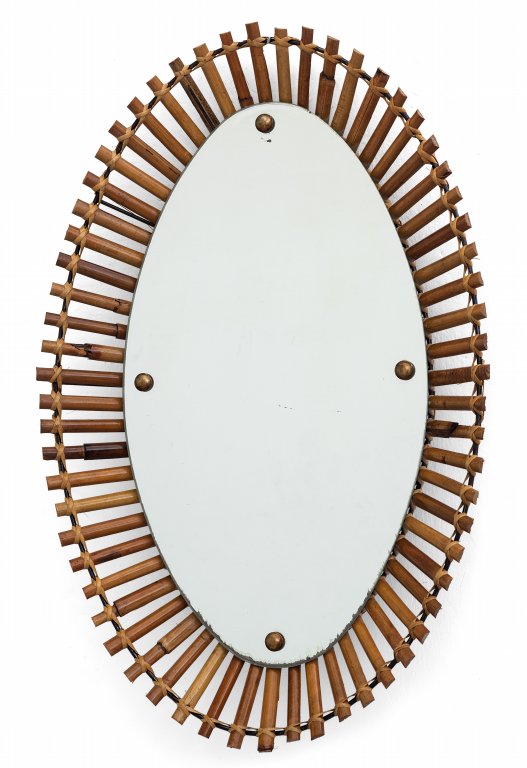 Lot 4418 | UNO SPECCHIO DA PARETE, anni '60. Tondino di ferro verniciato, bambù, canna...