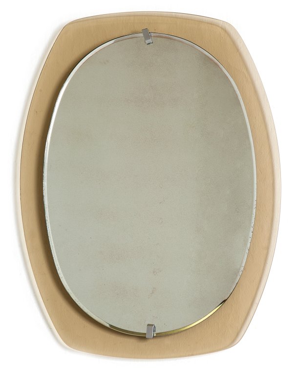 UNO SPECCHIO DA PARETE, 1962. Profilato di acciaio, cristallo colorato...