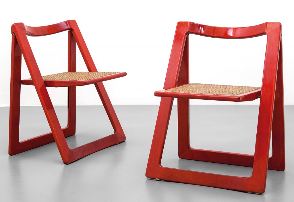 PIERANGELA D'ANIELLO, ALDO JACOBERDue sedie pieghevoli "Trieste" per BAZZANI,...