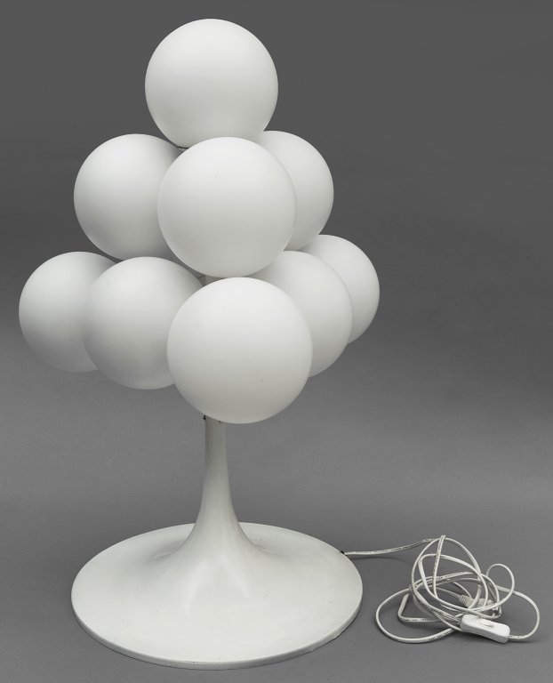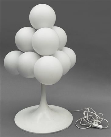 UNA LAMPADA DA TAVOLO, anni '70. Alluminio verniciato, vetro opalino...