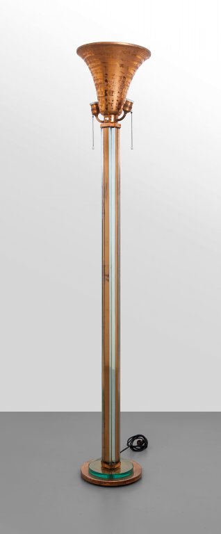 UNA LAMPADA DA TERRA, anni '30. Cristallo molato, rame. Altezza cm 185A FLOOR...