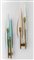 Ottone, cristallo curvato, cristallo colorato curvato.