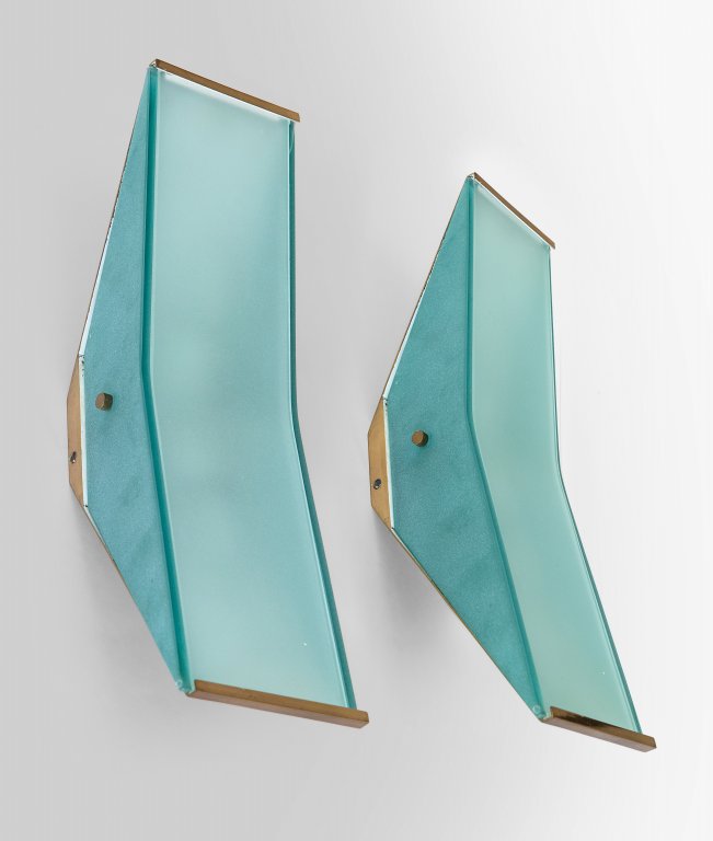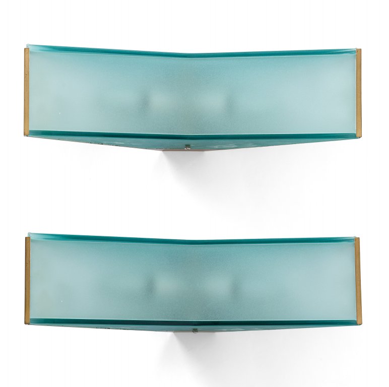 FONTANA ARTE Due lampade da parete "2135", 1962. Cristallo curvato satinato,...