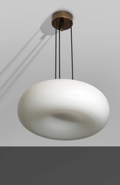 Lot 2056 | FONTANA ARTEUna lampada a sospensione "2356", 1964. Ottone, vetro opalino...