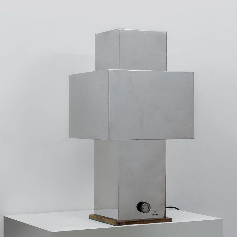 WILLY RIZZO Una lampada da tavolo per EMART, circa 1972. Acciaio inox,...