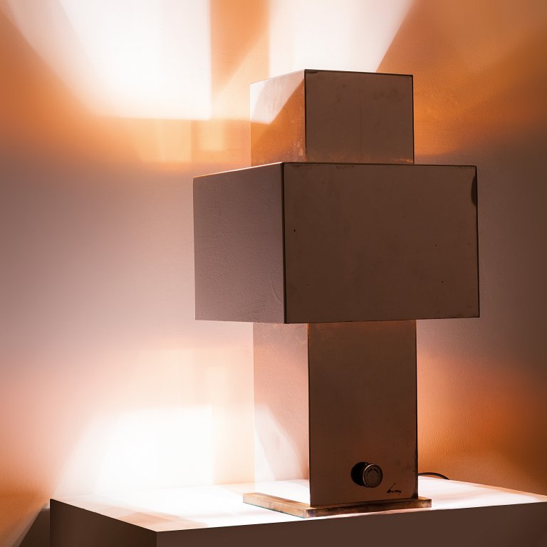 Acciaio inox, ottone, regolatore di intensità luminosa.