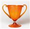 Una coppa biansata di vetro arancio iridescente, circa 1922-1925.