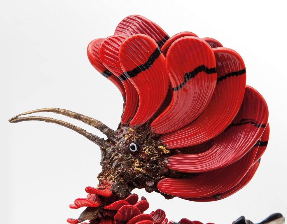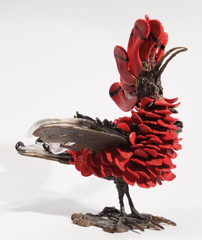 TONI ZUCCHERI, VENINIFigura di upupa, 1991. Bronzo, piume in paste vitree....