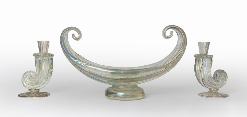 Un trittico costituito da una coppa e due candelieri, 1930.