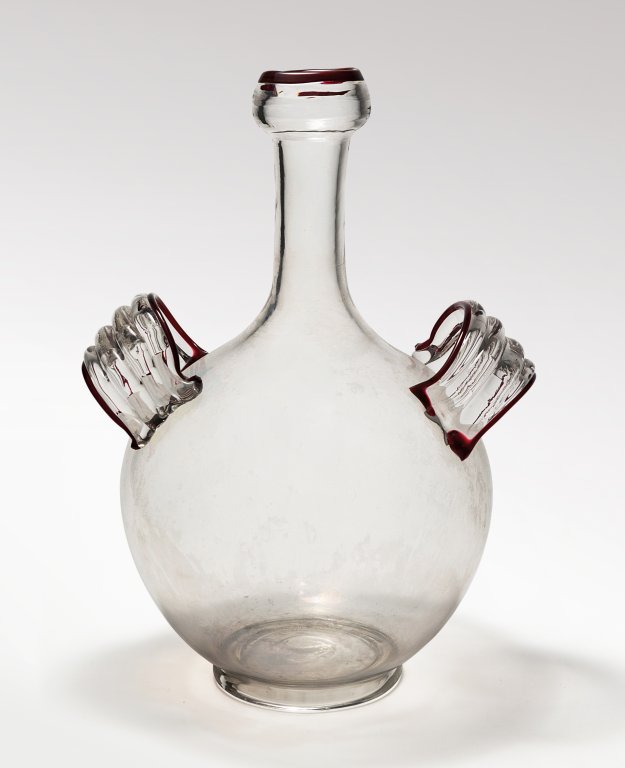 Una fiasca in vetro trasparente conanse a nastro, 1925-26.