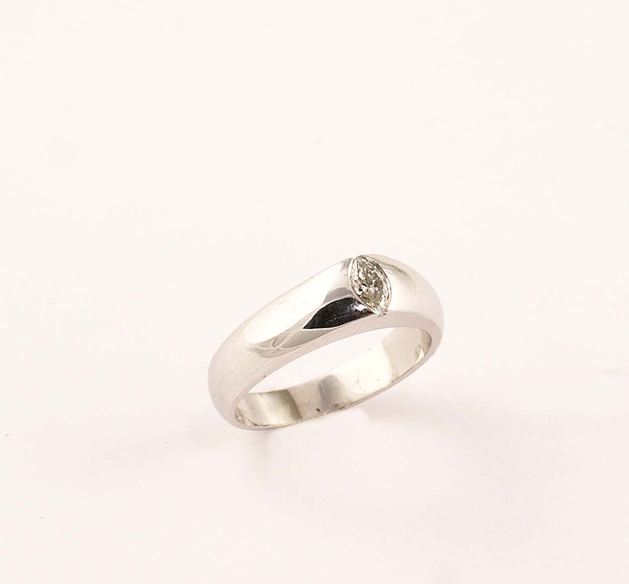 Anello in oro bianco 18kt con incastonato un diamante taglio marquise per 0,23 punti circa, gr. 6,3.