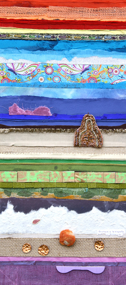 Leila Mariani San Donato Milanese 1970 Ovunque è la risposta 2 collage di materiali di riciclo 29,5x66,5 Certificato di autenticità