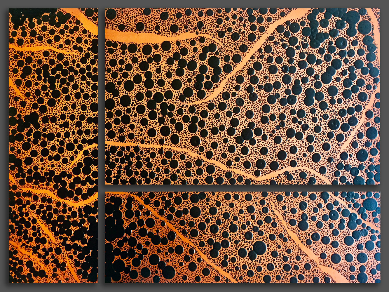 Iole Oliva Milano 1991 Skins 2017 Gesso nero e vernice acrilica color rame su mdf (3 tavole) 90x120 Certificato di autenticità