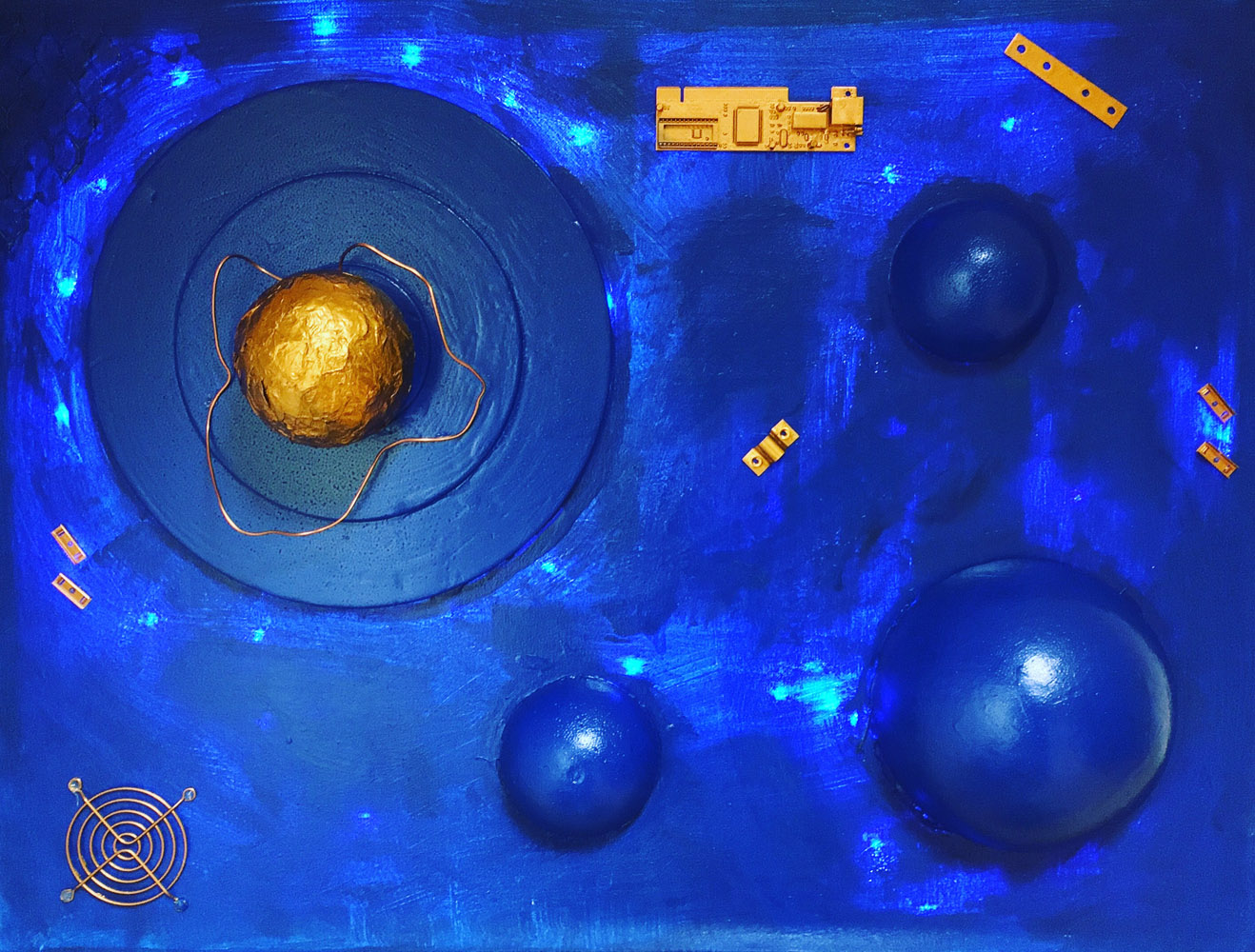 Bassott torino 1968 Deep Blue 2017 Mista su tela con oggetti e luci 60x80...