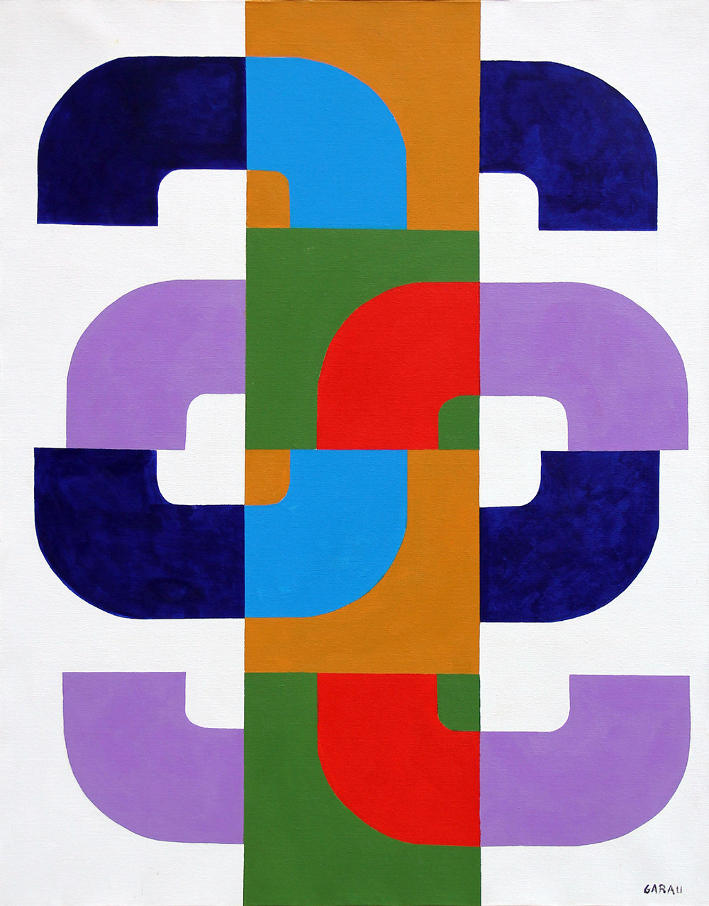 Augusto GARAU (Bolzano, 1923 Milano, 2010) Composizione astratta n.4 variante, 1975, acrilico su tela, cm. 100 x 81, Firma 'Garau' (in basso a destra) #Firma, data, titolo 'A. Garau, 1975, Composizione astratta n.4 variante' (al retro) Autentica della figlia Marina Garau su fotografia