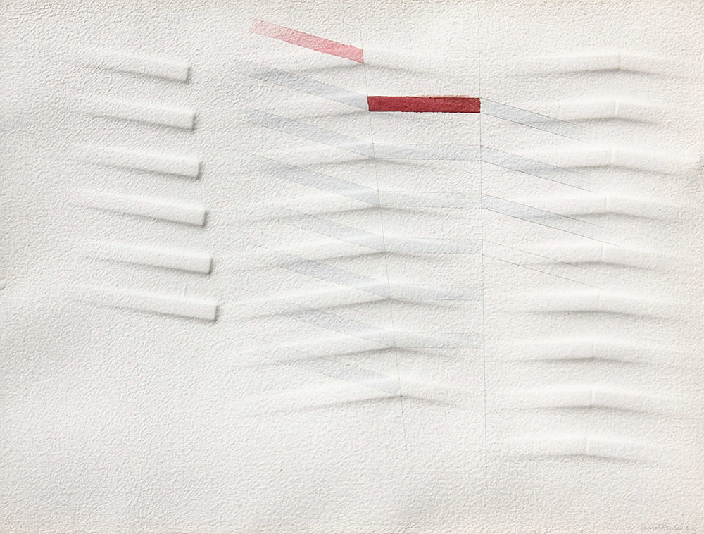 Agostino BONALUMI (Vimercate (MI) 1935 Desio, 2013) Senza titolo, 1985, tecnica mista su cartoncino estroflesso, cm. 56 x 74, Firma, data 'Bonalumi, 85' (in basso a destra) Autentica dell'Archivio Bonalumi, con n. 85-040C #Certificato di provenienza di Farsetti Arte