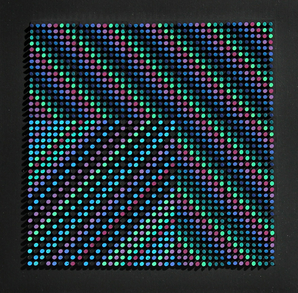 Franco COSTALONGA (Venezia 1933 ) Gradienti di luminosità CQDSVV, 1999, cilindretti su cartone, cm. 30 x 30, Firma, titolo, firma, data 'Costa Longa, CQDSVV, F. Costalonga, 99' (al retro) Autentica dell'artista su fotografia