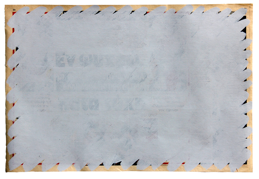 Antonio SCACCABAROZZI (Merate, 1936 Santa Maria Hoe', 2008) Quantità in muta, 1988, vinilico su giornale, cm. 39 x 58, Opera pubblicata on line sul sito dell'Archivio Antonio Scaccabarozzi, Titolo, tecnica, dimensioni, luogo, data, firma 'Quantità in muta, n° 32, vinilico su giornale, 39x58, Atene, 1988, Scaccabarozzi'; #etichetta dell'archivio dell'artista #(al retro)