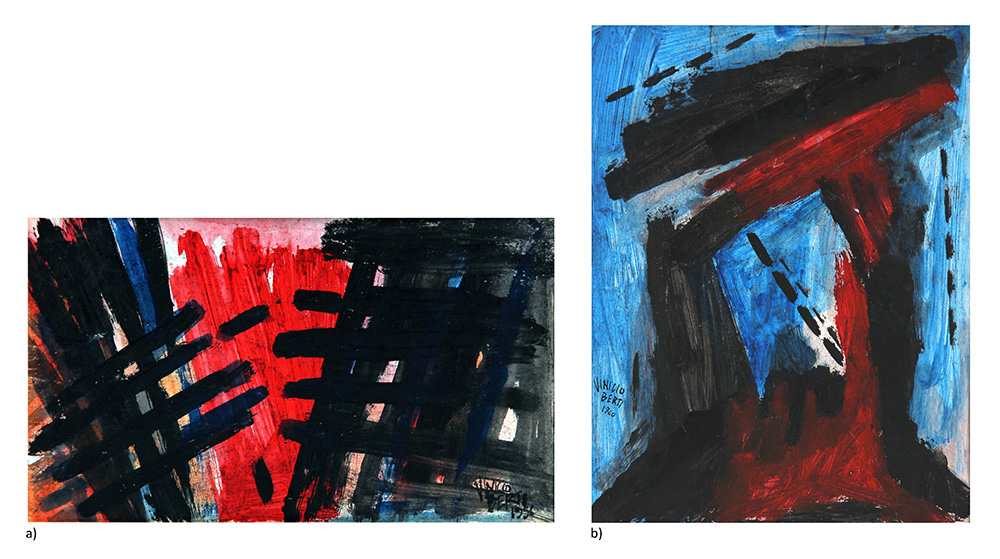 Vinicio BERTI (Scandicci 1921 Firenze 1991) Senza titolo, 1956, tecnica mista su cartoncino, cm. 15 x 26, Lotto composto da due opere #A) L'opera misura cm. 15x26 #Firma, data 'Vinicio Berti, 1956' (in basso a destra) #B) L'opera misura cm. 27.5x19.5 #Firma, data 'Vinicio Berti, 1960' (in basso a sinistra)