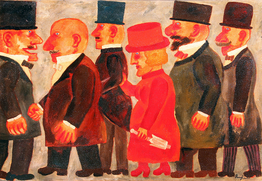 Franz BORGHESE (Roma 1941 Roma 2005) Senza titolo, olio su tela, cm. 50 x 70, Firma 'Borghese' (in basso a destra) #Timbro della galleria Proposte d'Arte, Legnano (al retro) Autentica dello Studio Franz Borghese Archivio Generale, con n. 19/16