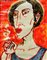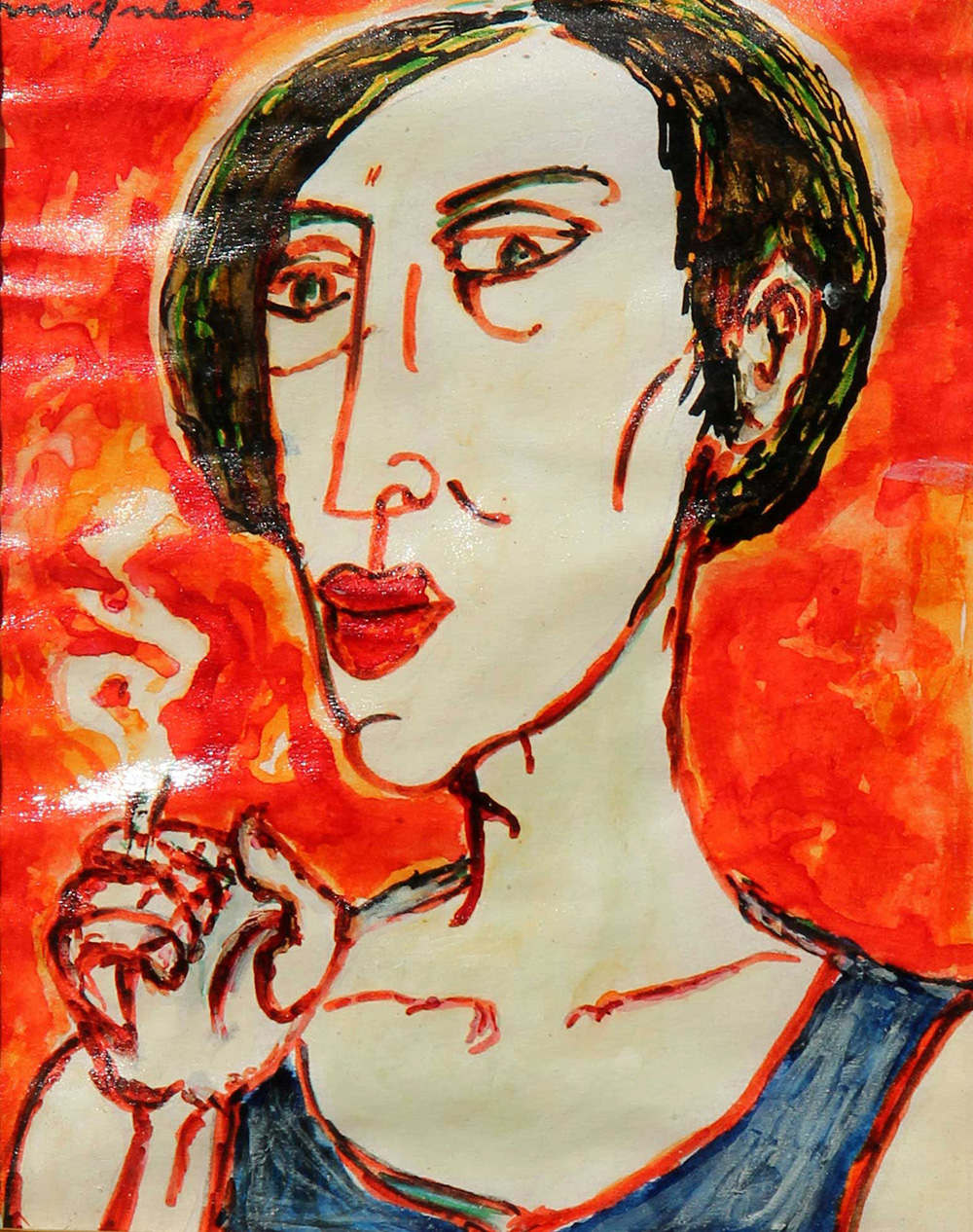 Giuseppe MIGNECO (Messina 1908 Milano 1997) Donna che fuma, china colorata su carta applicata su cartone, cm. 18 x 14, Firma 'Migneco' (in alto a sinistra) #Timbro della galleria Simone Vallerini, Pisa (al retro) Autentica dell'artista su fotografia