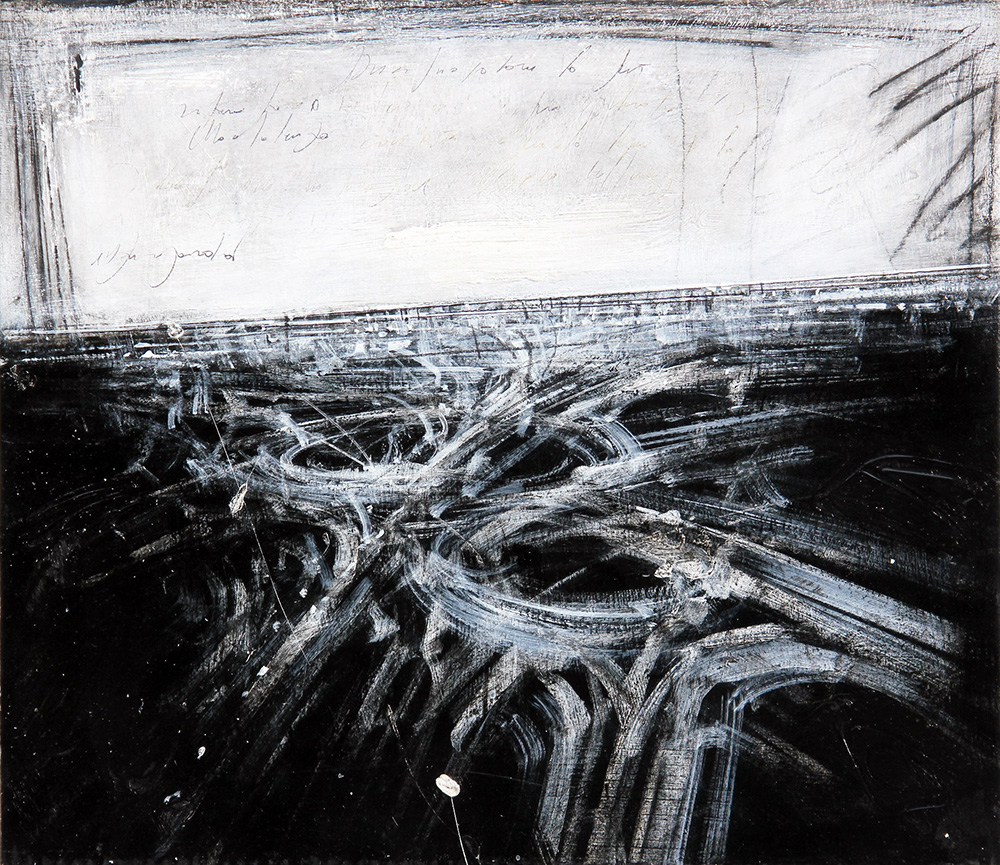 Jonathan GUAITAMACCHI (Londra 1961 ) Ad memoriam. Visione circolare, 2001, tecnica mista su carta intelata, cm. 36 x 43, Titolo, firma, titolo, data, titolo, firma 'Ad memoriam, Jonathan Guaitamacchi, Ad memoriam, 2001, Visione circolare, Jonathan Guaitamacchi' (al retro) Autentica dell'artista su fotografia